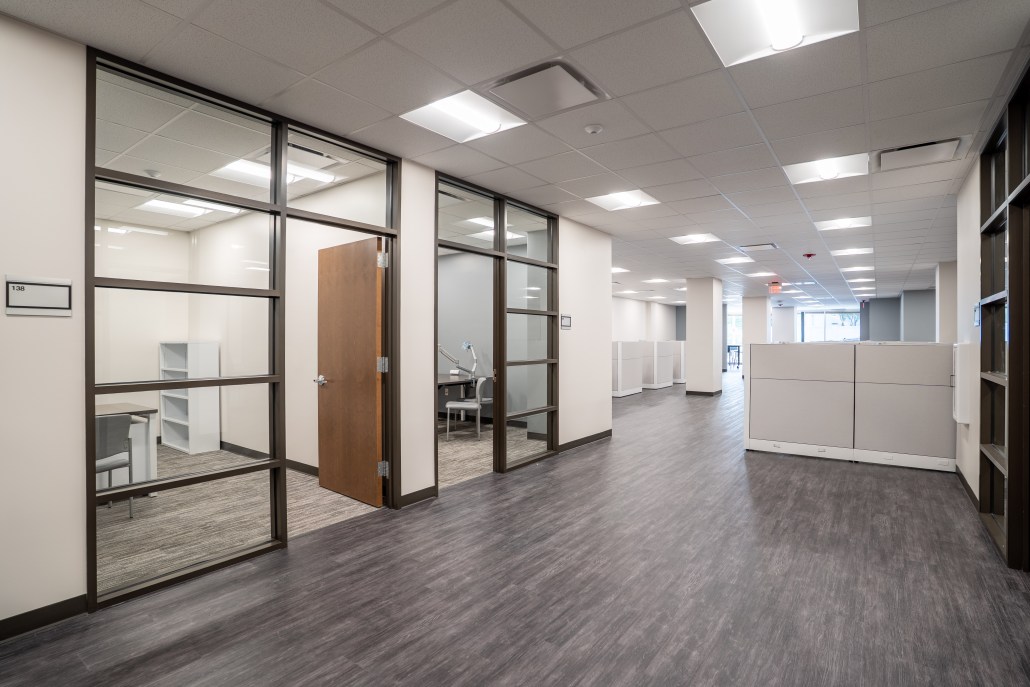 Built in 1959 and last renovated in the early 2000s, the first floor of the Public Defenders’ Office was overdue for a complete transformation. The renovation not only address critical issues – including floor leveling & asbestos abatement – but restructured the floor plan. The new design introduces open and collaborative work areas, a flexible training room, and improved amenities such as a children’s play area and mother’s room. The clean and modernistic space, with improved functionality, will enhance the County’s ability to provide services to the community.