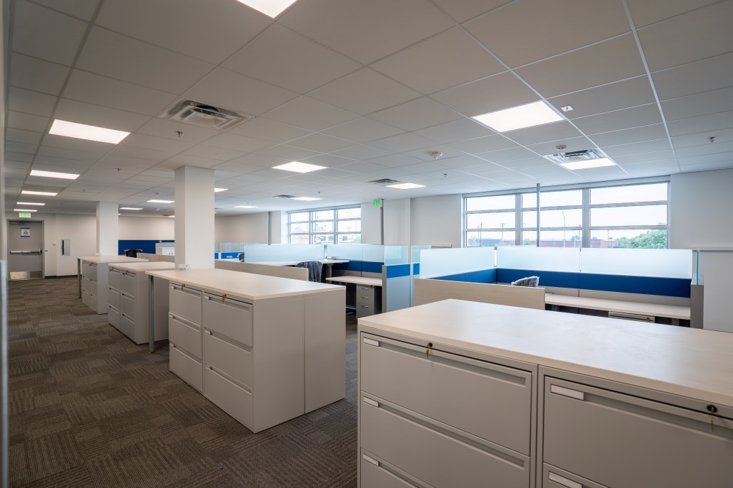 TxDot Building 7 started out as a warehouse and was converted into an office space with new restrooms, break rooms, private offices and open workspaces. In the process of the transformation, we demolished and replaced all mechanical, electrical and plumbing systems. New structural framing allowed for the installation of windows and the building was brought up to code by the erection of two structural staircases. The office areas were created to be flexible workspaces with the interchangeability of the modular walls installed. Other items installed included new flooring, fresh paint, updated ceilings throughout, as well as the integration of an advanced security system and access control measures.